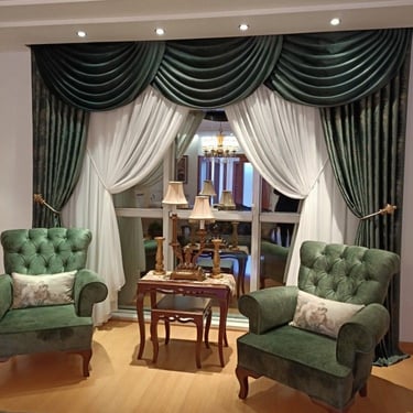 Cada cortina é confeccionada com atenção a detalhes artesanais e materiais de qualidade.